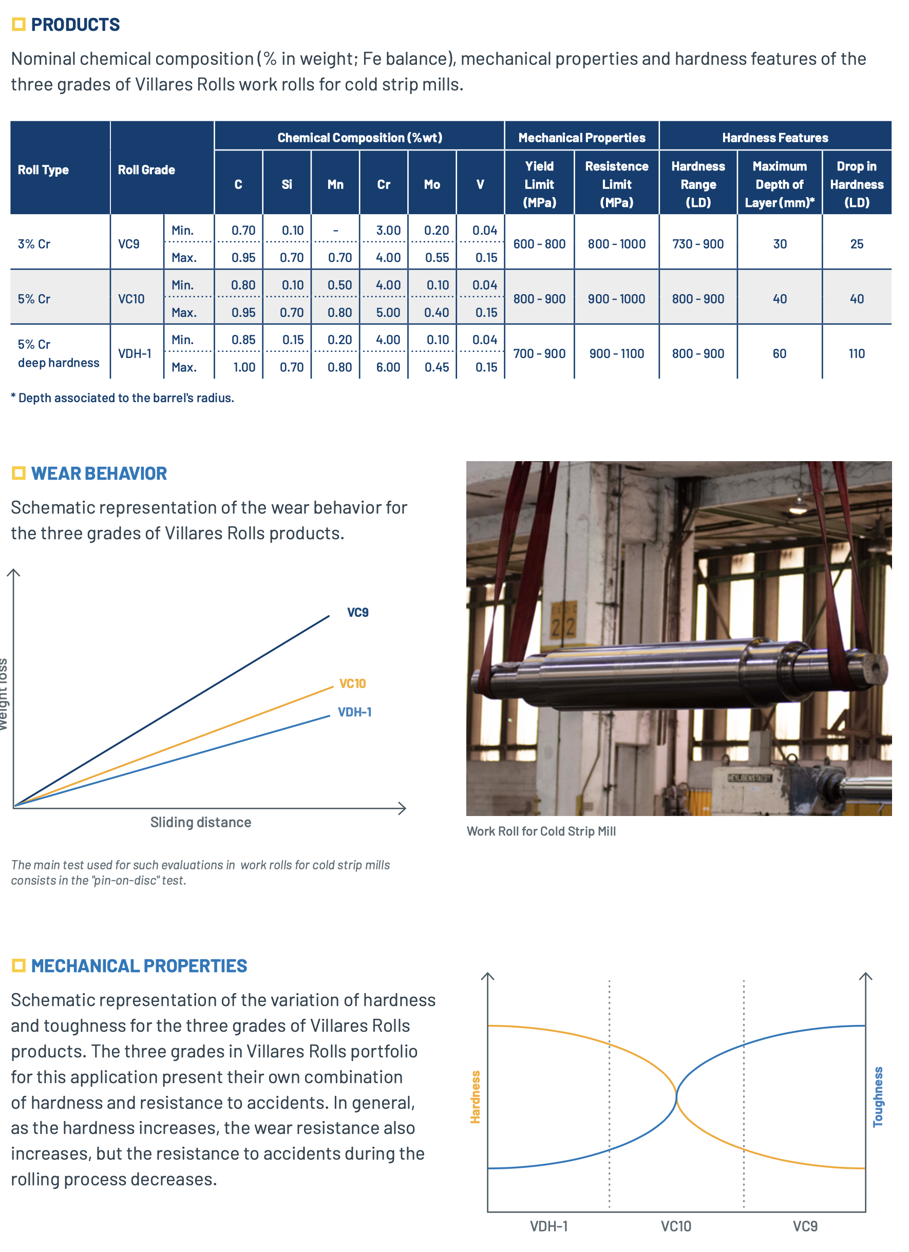 Three types of work rolls for cold strip mills are currently available on Villares Rolls portfolio.